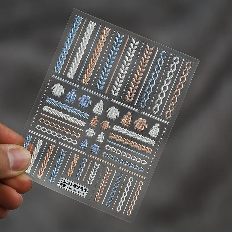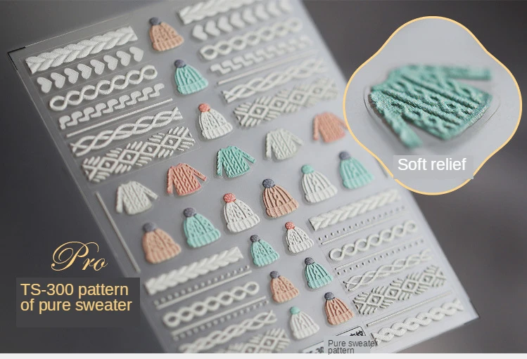 5D Зимний вязаный свитер одежда с ногтей Наклейка гравированные тис...