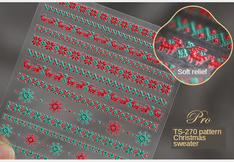 5D новый мягкий рельефный стикер для ногтей, Рождественский свитер,...