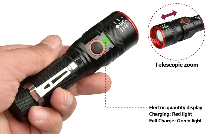 Светодиодный фонарик XM-L T6 SMD 2835, перезаряжаемый от Usb аккум...