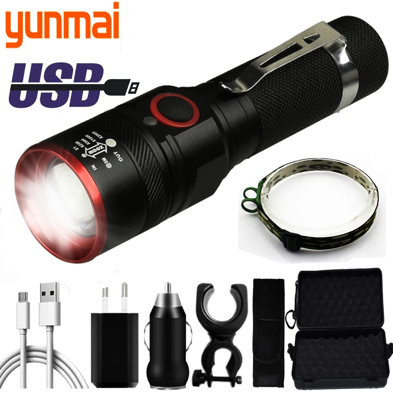 XM-L T6 светодиодная вспышка светильник Usb Перезаряжаемые фонарь 1...