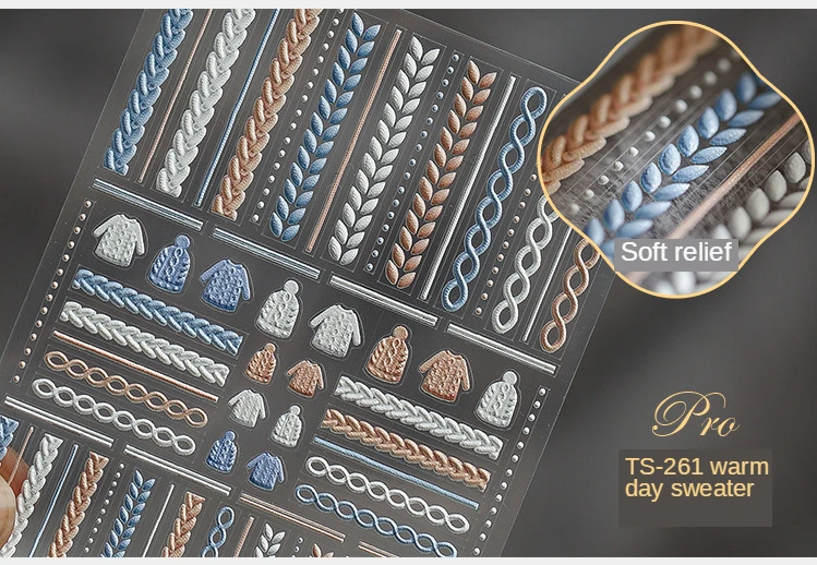 5D Зимний вязаный свитер одежда с ногтей Наклейка гравированные тис...