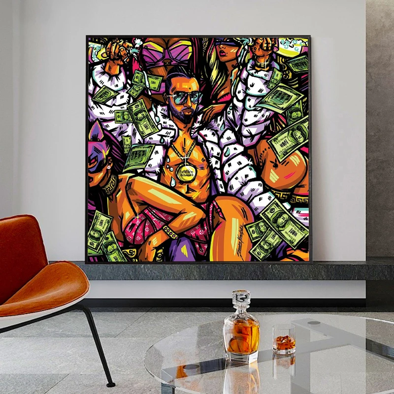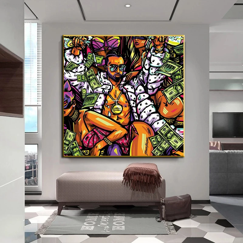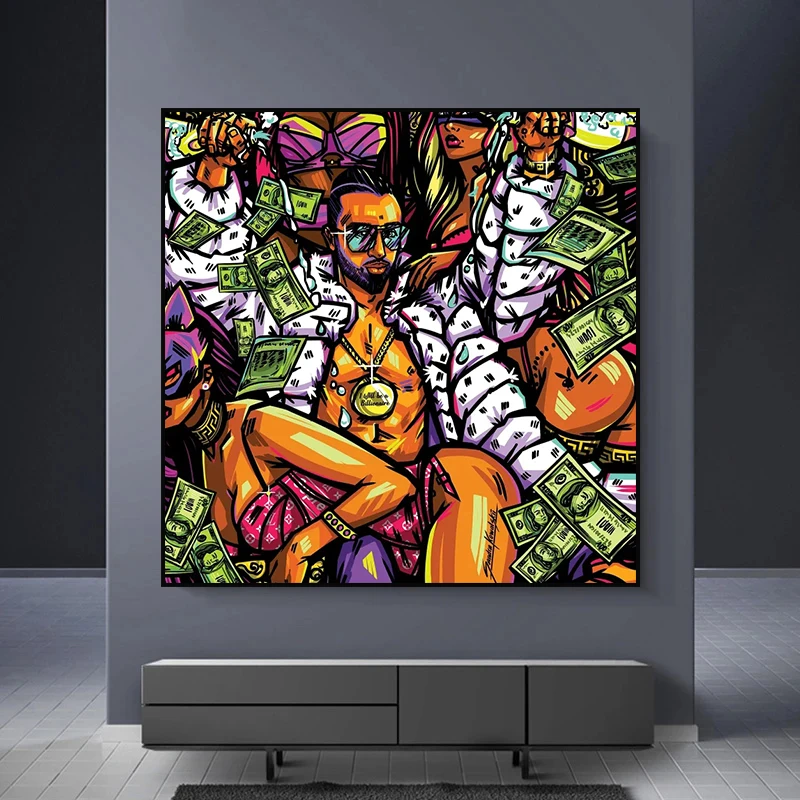 Художественный постер граффити с изображением миллиардера доллара и денег, картины на холсте, настенное искусство, декоративная картина для гостиной, дома