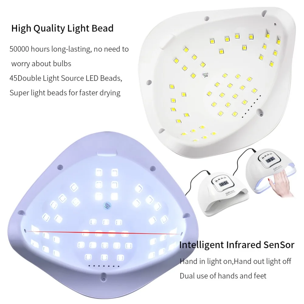 ⭐【Сушилка для ногтей или светодиодный гель-флексиблy】-150 Вт Высокая мощность УФ-Сушилка для ногтей с 45 шт. регулируемым осветительным элементом светодиодные бусины делают ногтей или светодиодный гель умнее сушка. Гибкие варианты сушки с 4 настройками таймера: 10s/30s/60s/99s режим, мощность между 150W(10S)-80W(30S/60S)-54 Вт (99S), чтобы соответствовать вашим требованиям к гелиевым лакам. Это сделало ногтевую лампу умной и удобной.⭐【Экономьте 80% времени для отверждения nails】-наш профессиональный УФ светодиодный светильник для ногтей для гелевых ногтей может сократить время отверждения на 80%, чем другие светодиодные лампы для ногтей. Вы легко получите красивые ногти из-за наших гелевых ламп для ногтей. Сэкономьте свое время, усилия и сумму денег, чтобы получить отличный опыт в маникюрном салоне.⭐[Удобный режим отверждения]-Инфракрасный Смарт-датчик может автоматически включаться для работы, когда вы положите руку в наш УФ-гель-светильник для ногтей; Между тем 4-я Функция синхронизации позволяет контролировать время отверждения с каждым слоем. 50,000 часов работы, долговечность.⭐【Модернизированная специальная форма назначения 】-достаточно большая светодиодная УФ-лампа для ногтей может одновременно вылечивать две руки. Съемная основа, предназначенная для отверждения ногтей. Незакрытая конструкция быстро рассеивает тепло.⭐【Satisfactory пост-продажное service】-24 часа он-лайн обслуживания. Содержание продукта :( 1 * УФ Гель-лак для ногтей светильник + 1 * Руководство + 1 * Американский ногтей штекер). Это отличный идеальный подарок на Рождество, День Святого Валентина, День рождения и годовщину свадьбы. Посылка:1 шт. * лампа для ногтей1 шт. * Источник питания1 шт. * Руководство пользователя