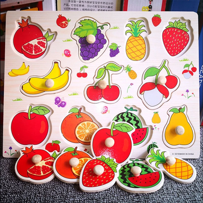 Детская развивающая геометрическая форма Монтессори, 3D пазл для сортировки фруктов и животных, доска для захвата рук, детский Дошкольный обучающий материал, игрушка