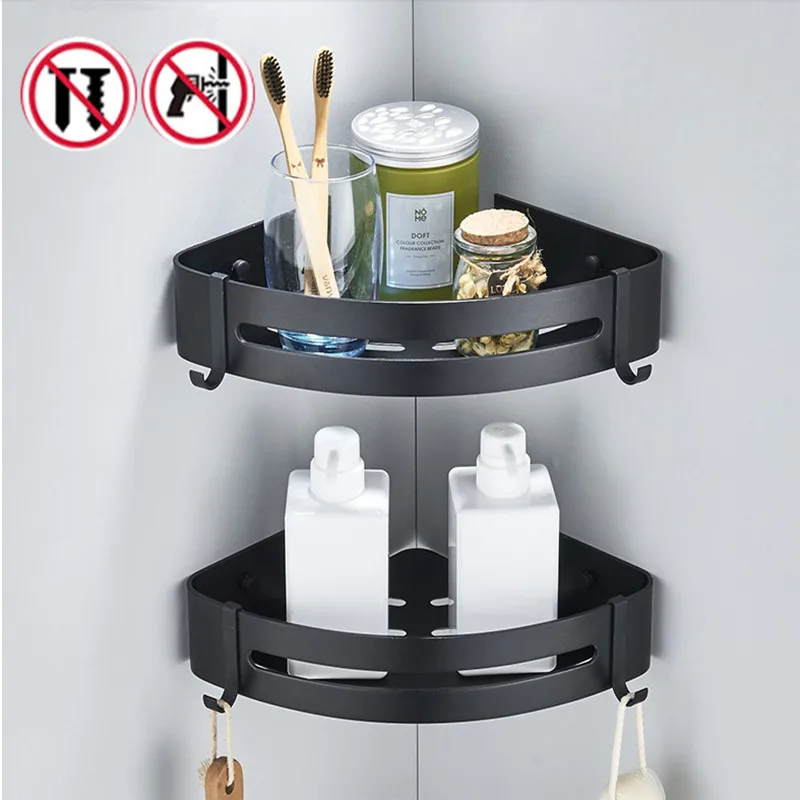 Треугольная стойка для хранения полотенец и душа, черные угловые полки, Настенный алюминиевый держатель для шампуня, полка-органайзер для ванной комнаты без сверления