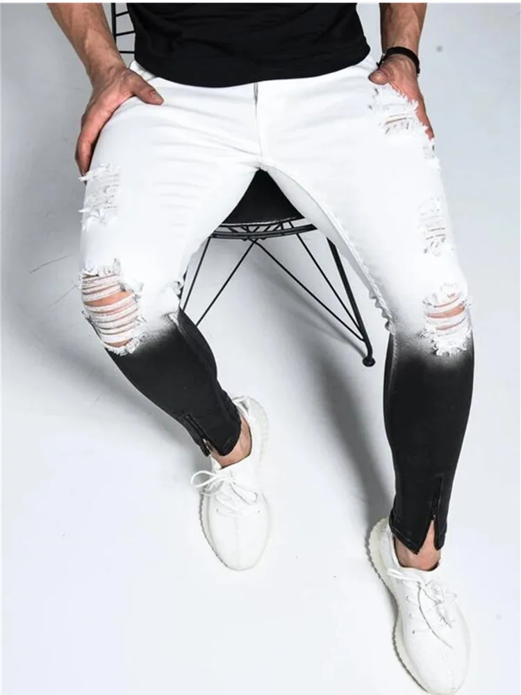 Мужские джинсы-карандаш с градиентом, черные и белые рваные джинсы,...