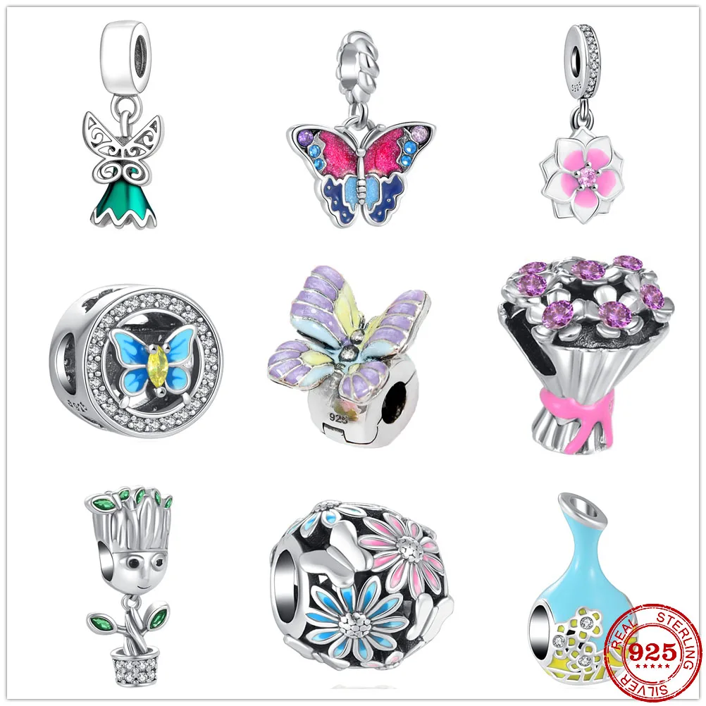 Бусины-Бабочки из серебра 925 пробы с подвесками