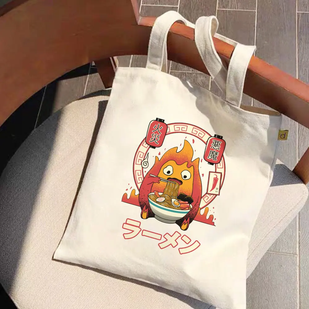 Женская Холщовая Сумка-тоут с аниме принтом, экологически чистая Су...