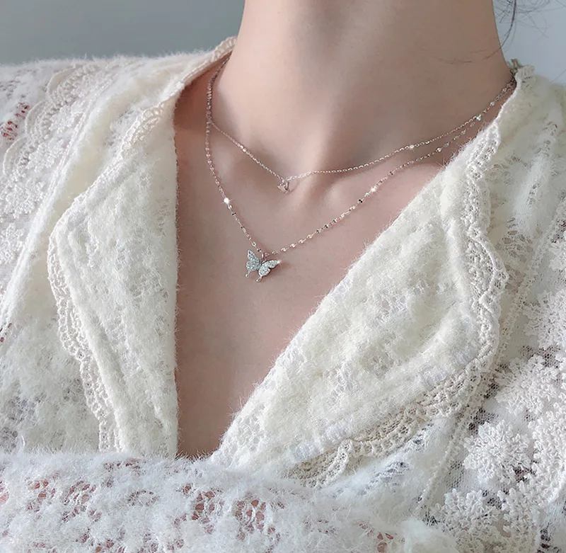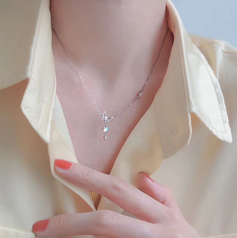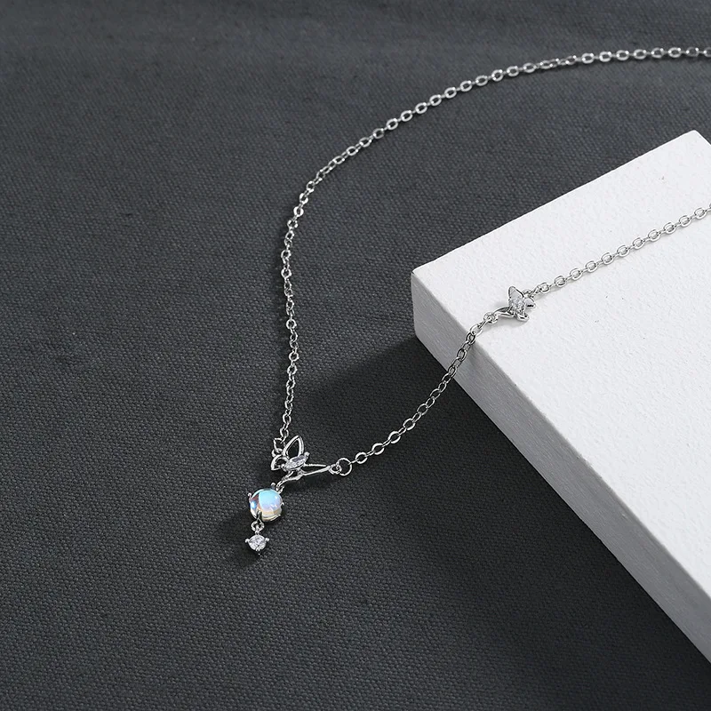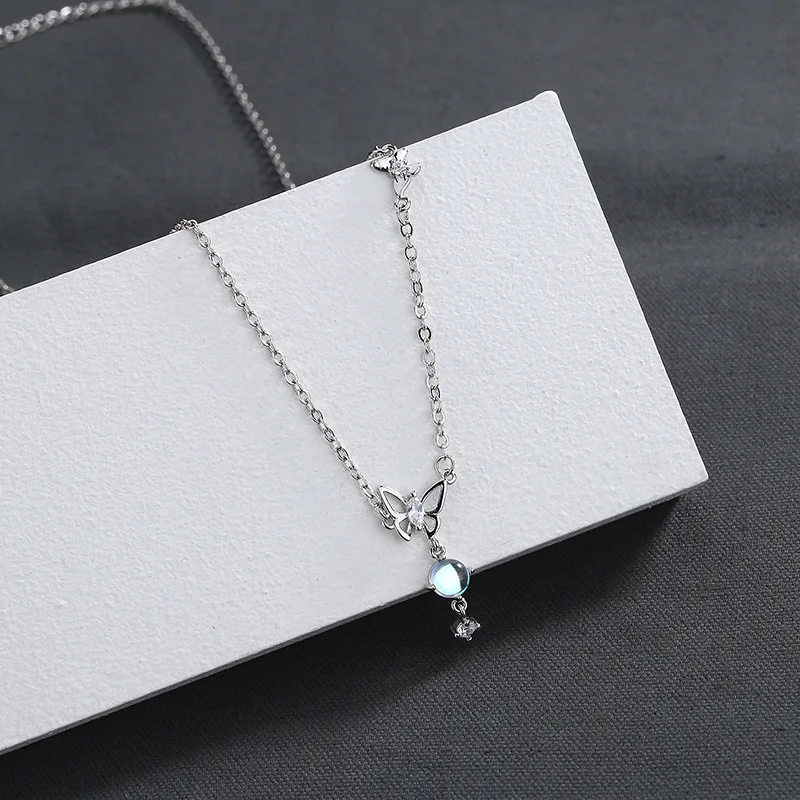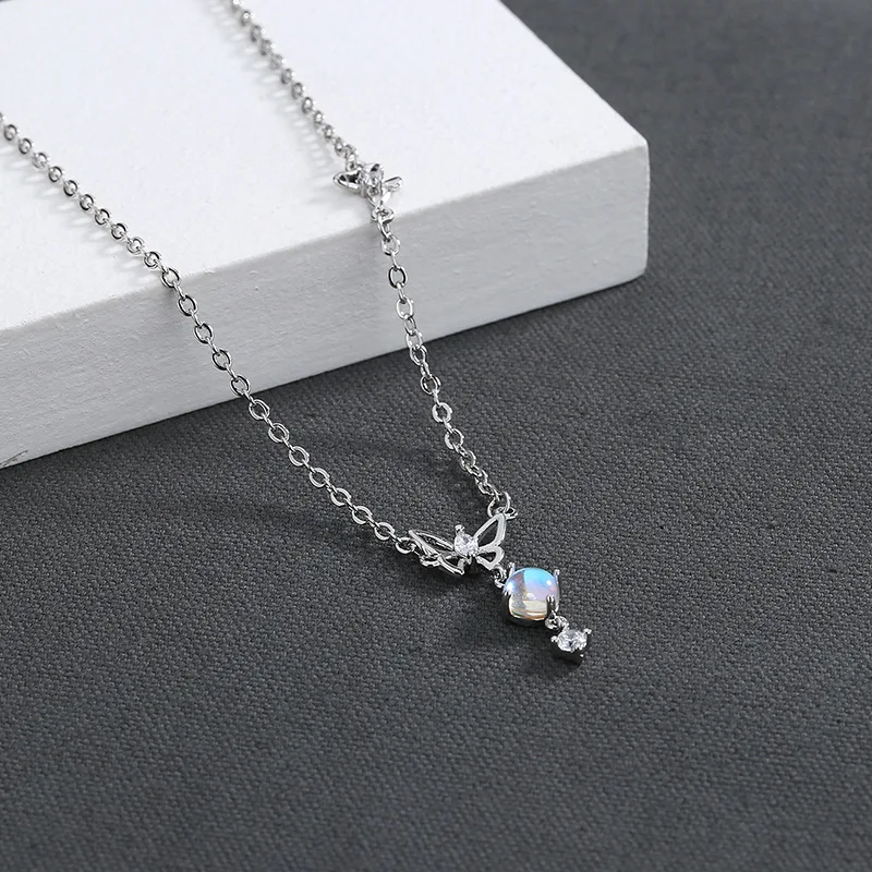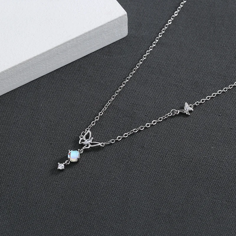 Женская цепочка с подвеской-бабочкой и лунным камнем