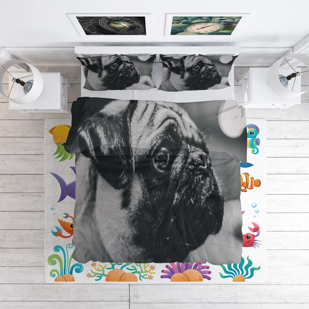 Комплект постельного белья с изображением мопса, животных, щенков, пододеяльник, 23 шт., постельное белье с наволочкой, пододеяльники для взрослых, подростков, Королевский Комплект постельного белья для питомцев