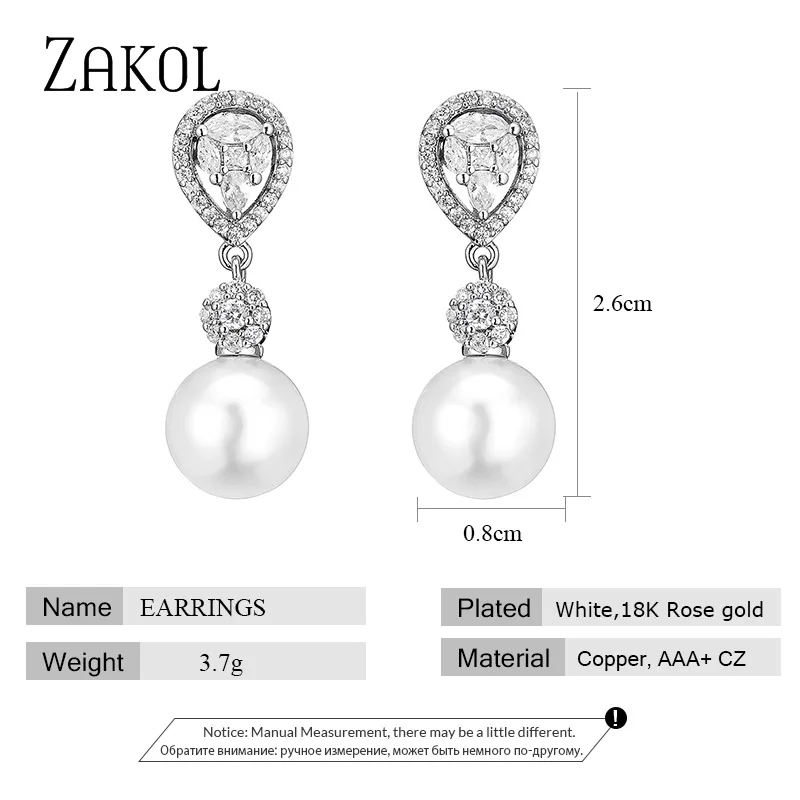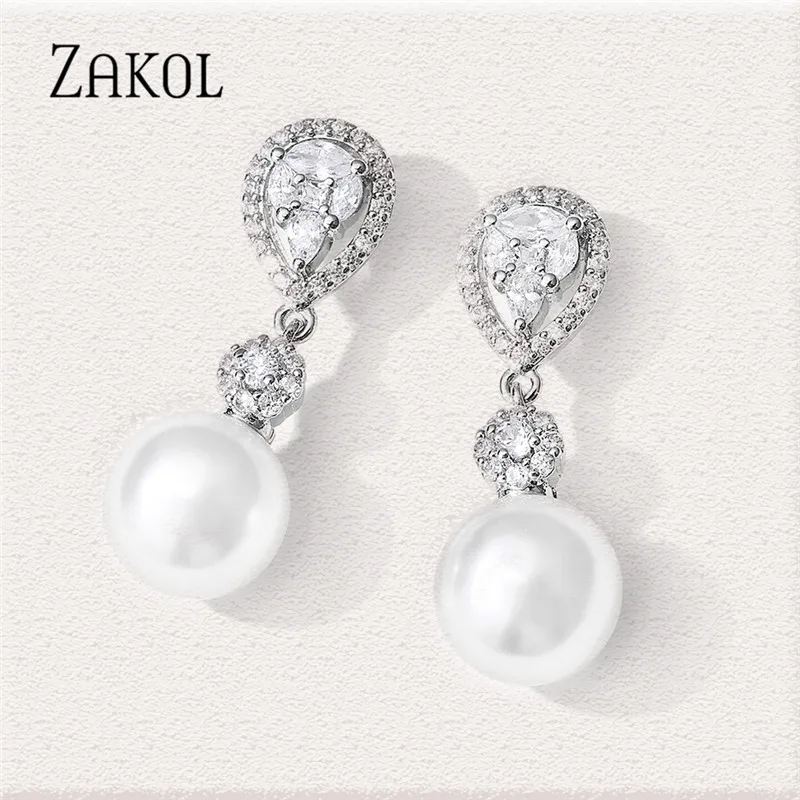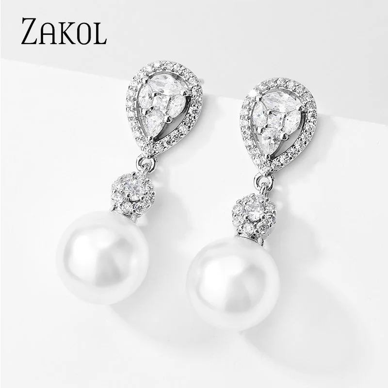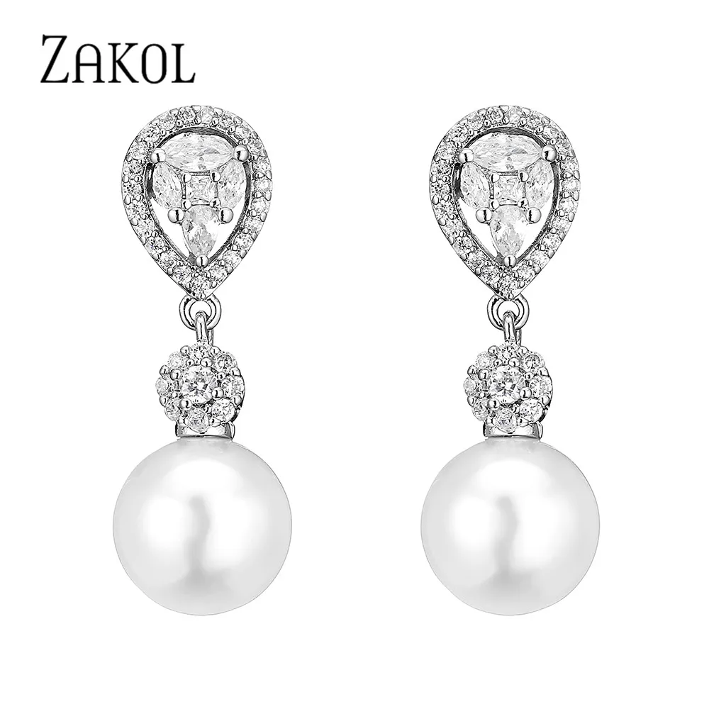 ZAKOL модные жемчужные Роскошные Длинные серьги ювелирные изделия для женщин AAA капли воды кубического циркония свадебные серьги EP2869