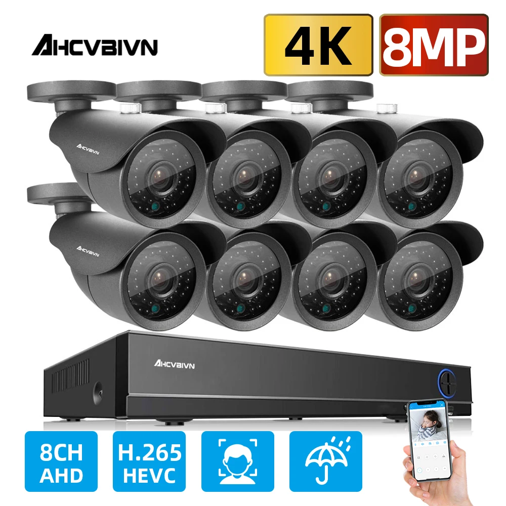 4K AHD DVR 8.0MP HD наружная система камер домашней безопасности H.265 8CH CCTV видео наблюдения DVR комплект черный AHD пуля камера набор