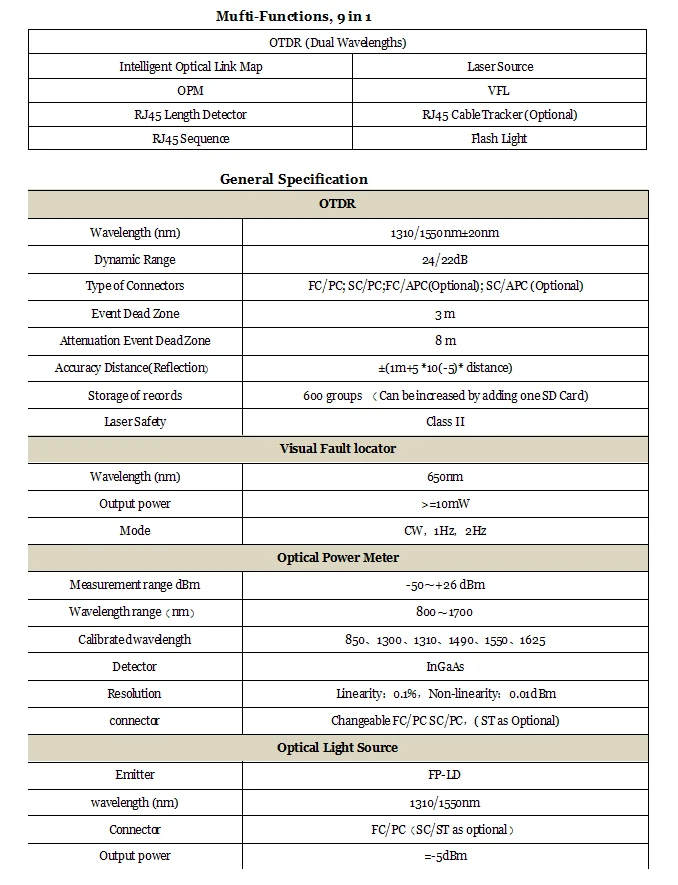 Оптический рефлектометр 9 в 1 с функцией отражателя времени, 24 дБ