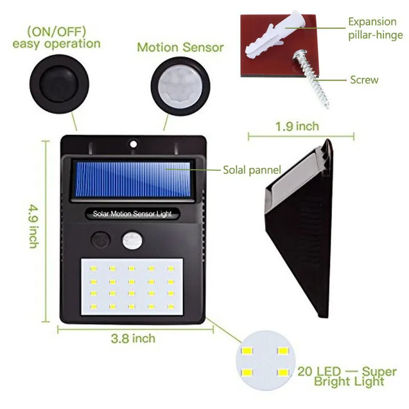 4. Индукция человеческого тела: Обновите инфракрасный датчик человеческого тела, когда темнеет, он будет автоматически освещаться, когда будет ощущаться температура тела. Когда вы уедете, режим энергосбережения будет активирован, и светильник будет выключен через 15 секунд.