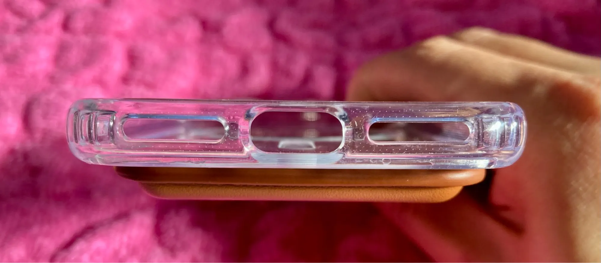Защитный пластик, который при снятии с внутренней стороны снимает часть magsafe. В miaso это не имеет значения, потому что я никогда не буду использовать чехол для беспроводной зарядки. В противном случае хорошо. Кошелек идеально подходит.