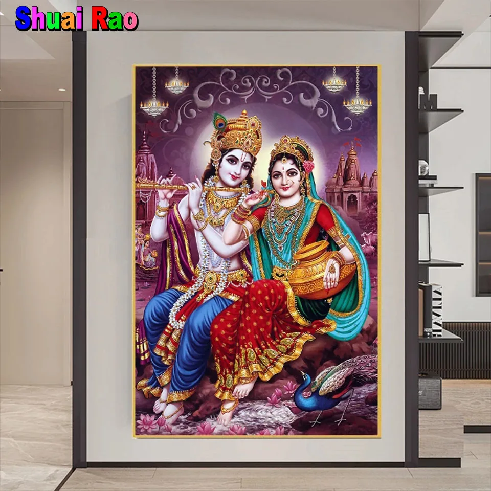 Алмазная живопись, лорд Радха, Кришна, Будда, сделай сам, полноразмерная картина, индийская религиозная Алмазная вышивка, подарок 5d, своими руками