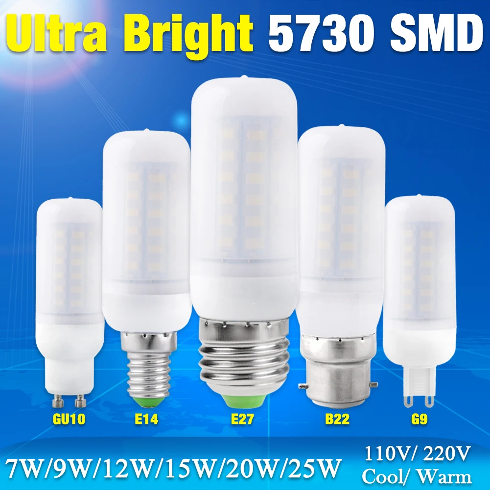 10 шт., Сверхъяркие светодиодсветодиодный лампочки SMD 5730, E27 B22 G9, 220 В