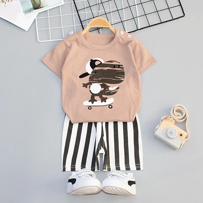 Детские комплекты унисекс, костюм для мальчиков и девочек с коротким рукавом, летние тонкие детские наряды, одежда для маленьких девочек, комплект из 2 предметов для младенцев