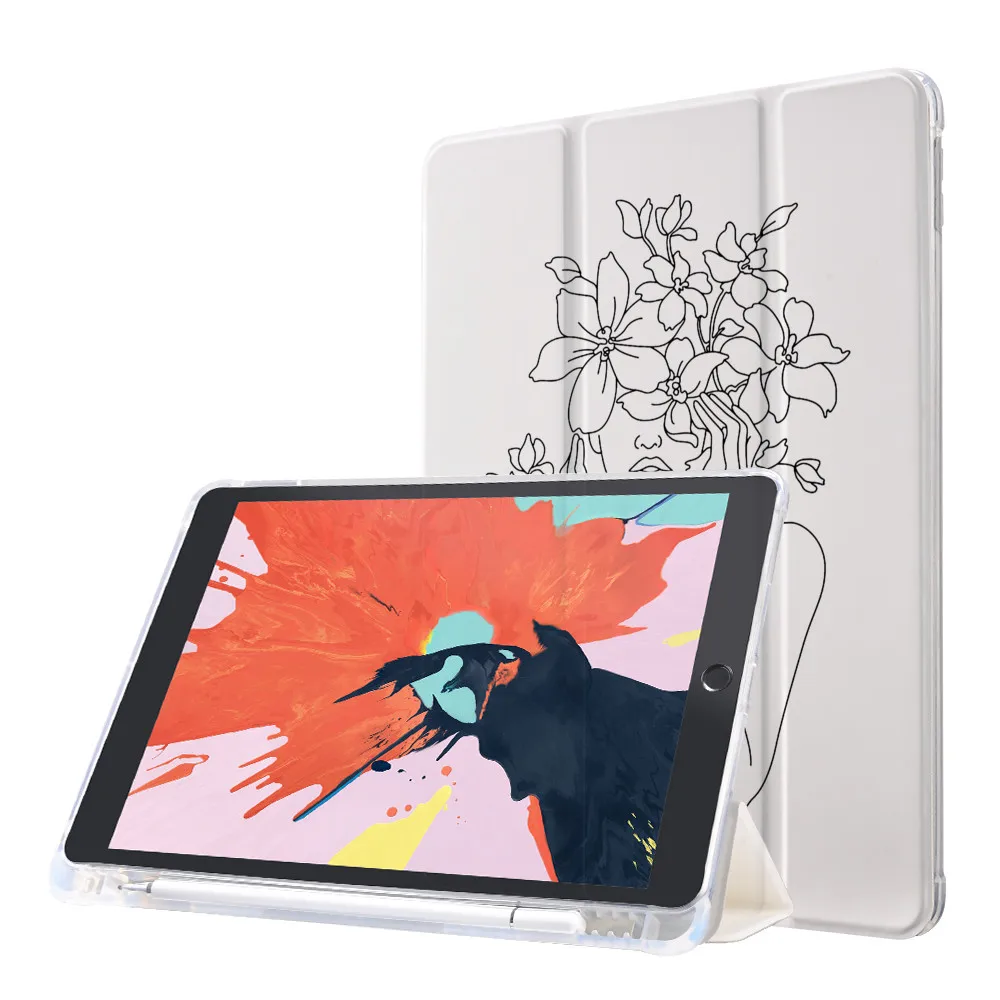 Особенность: с поддоном для карандаша для ipad удобно использовать карандаш для ipad.1. Передняя часть изготовлена из высококачественной искусственной кожи, задняя крышка изготовлена из мягкого силикона, который удобен на ощупь.2. Полностью защищает ваш ipadas, идеально подходит.3. Грязеотталкивающий, пыленепроницаемый и моющийся.4. Высококачественная печать, четкие узоры.5. Несколько функций, функция сна/пробуждения, может использоваться в качестве подставки для ipad.Хорошо продуманный, просто для более удобного использования.