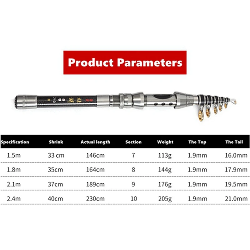 Телескопическая удочка 1,5 м, 1,8 м, 2,1 м, 2,4 м, Спиннинг для ловли карпа, кастинговое удилище из углеродного волокна, катушкодержатель, удочка для ловли на скалах, удочка, снасть, удочка