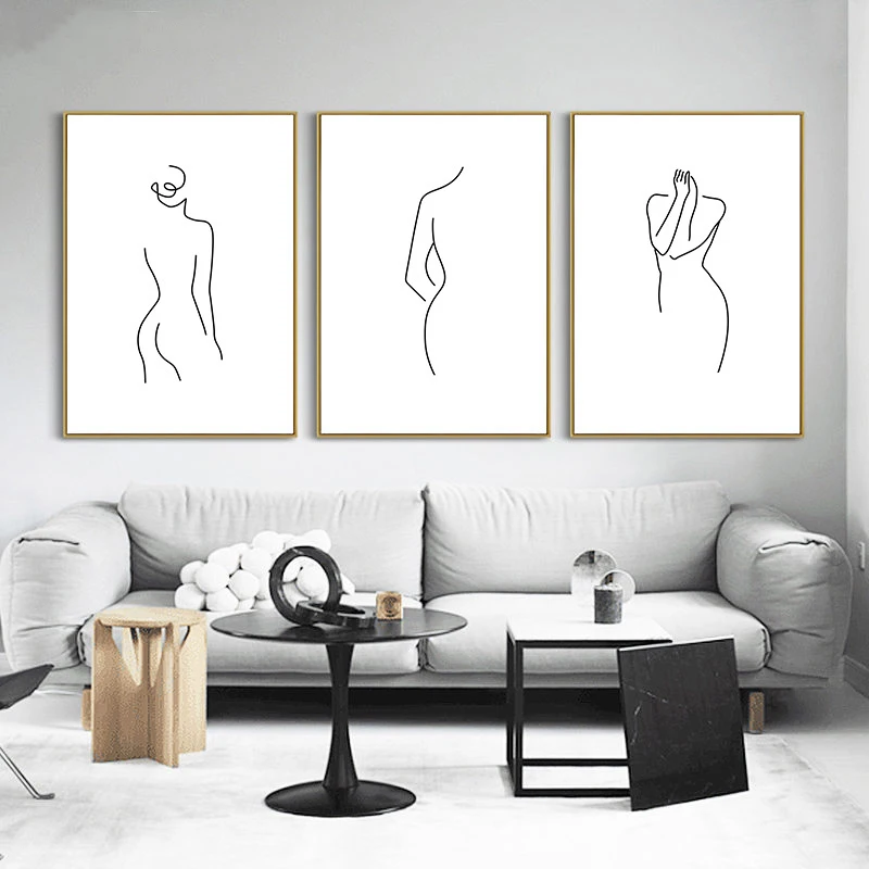 Абстрактная обнаженная женская Картина на холсте черные и белые сов...