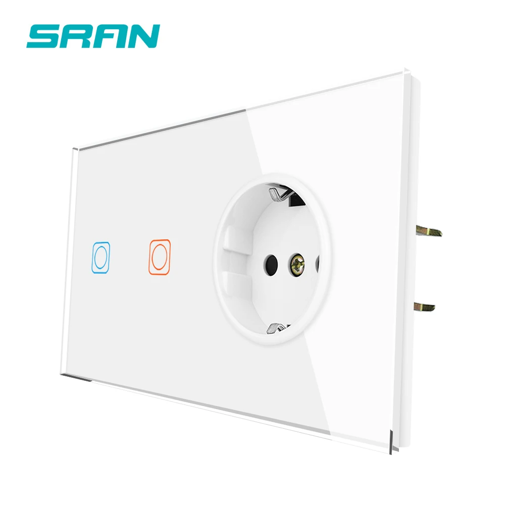 Сенсорный выключатель SRAN, стеклянная панель, 153*82 мм, 220 В, 16 А, настенная розетка с выключателем света, 1 комплект, 1 канал, F8C1D1001