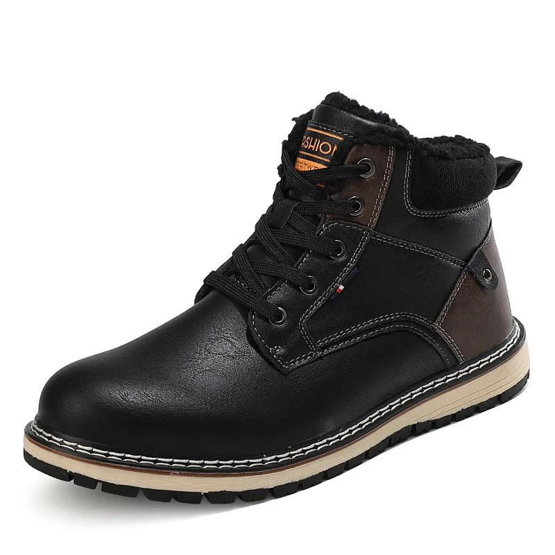 Зимние мужские ботинки из натуральной кожи, Теплые ботильоны на толстом меху, рабочая мужская обувь, водонепроницаемые зимние ботинки