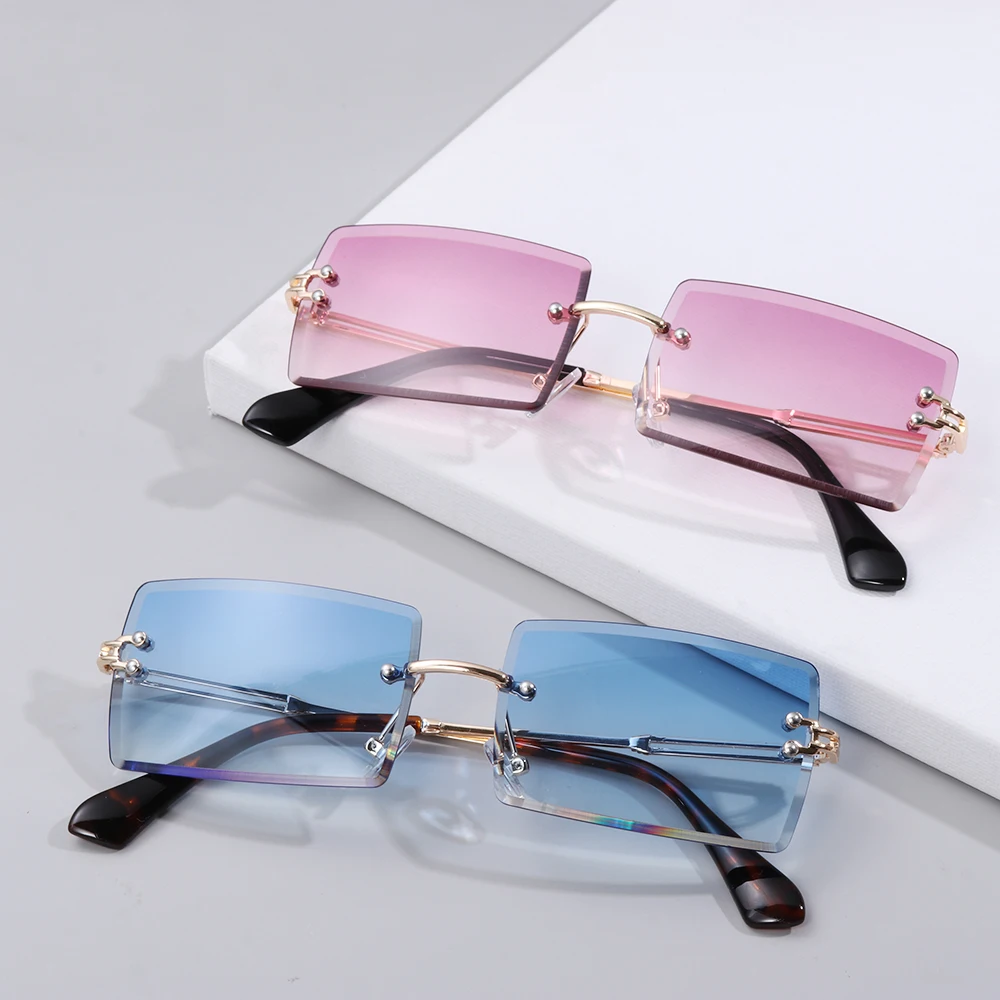 Солнцезащитные очки без оправы UV400 для мужчин и женщин, модные маленькие прямоугольные, с защитой от ультрафиолета, для езды на велосипеде и занятий на свежем воздухе, лето 2021