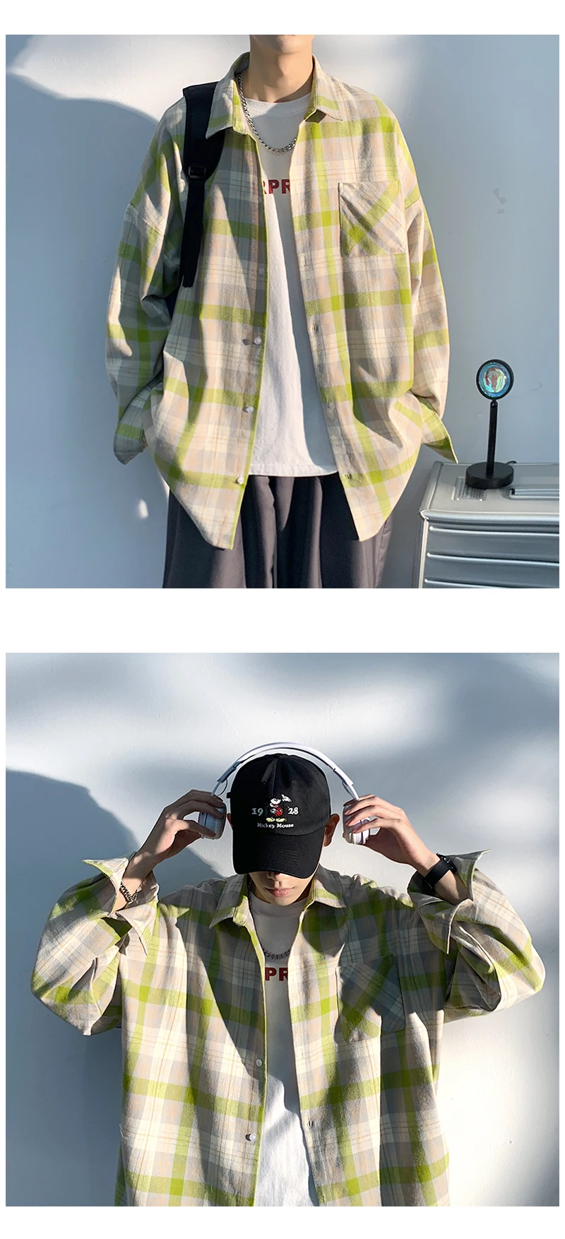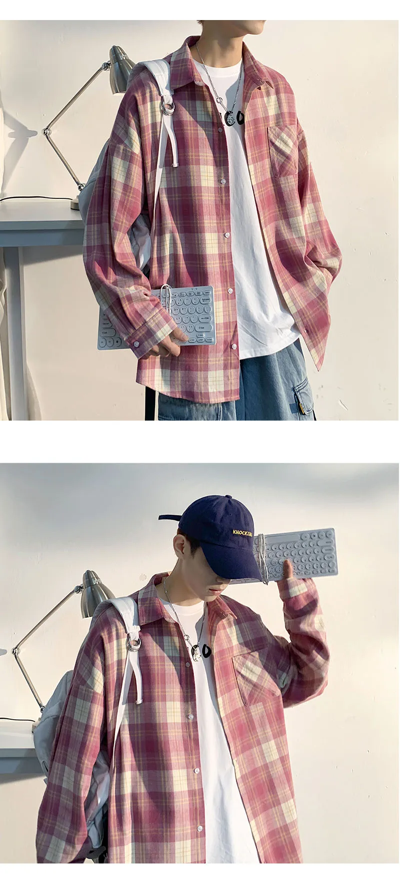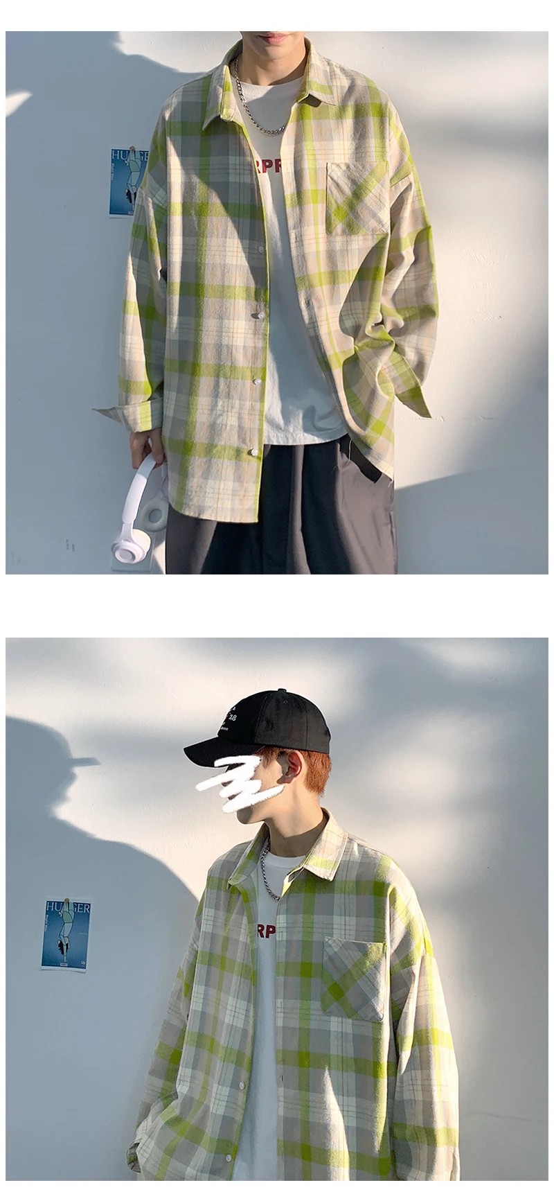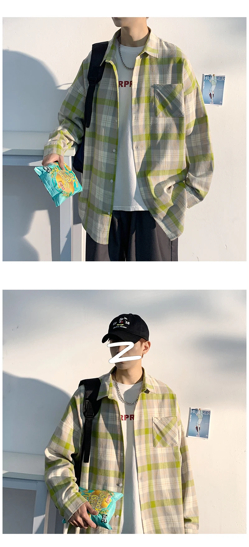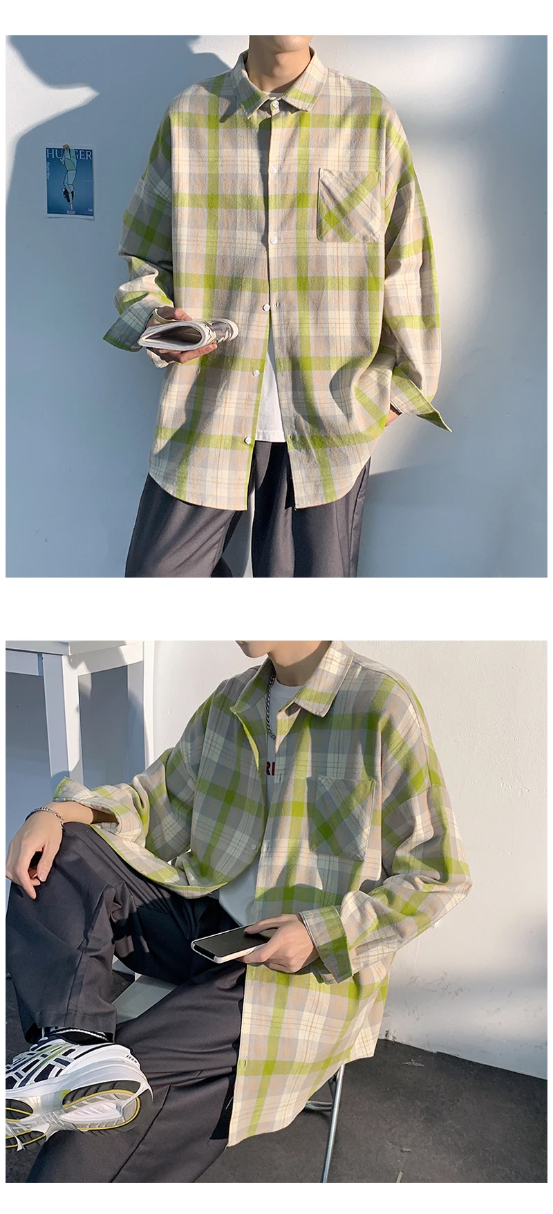 FeatureYouthful Vitality Plaid Shirts Men Streetwear