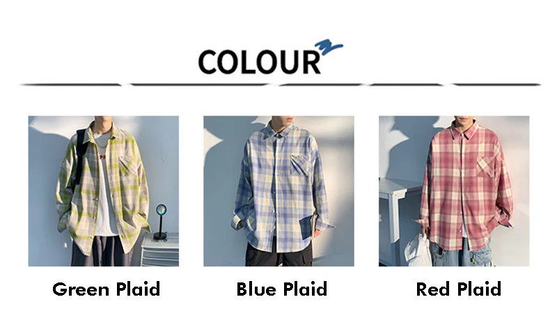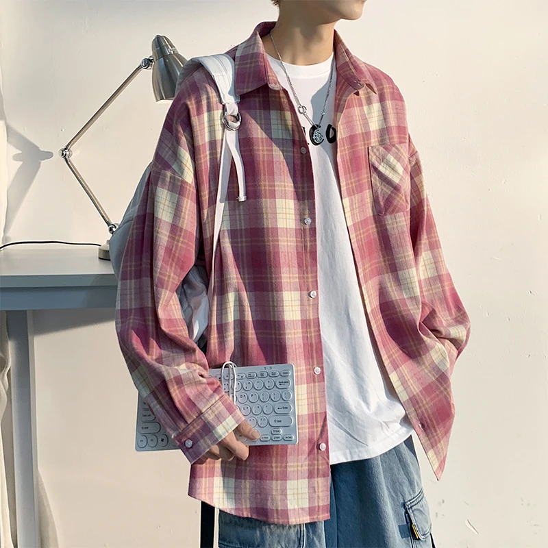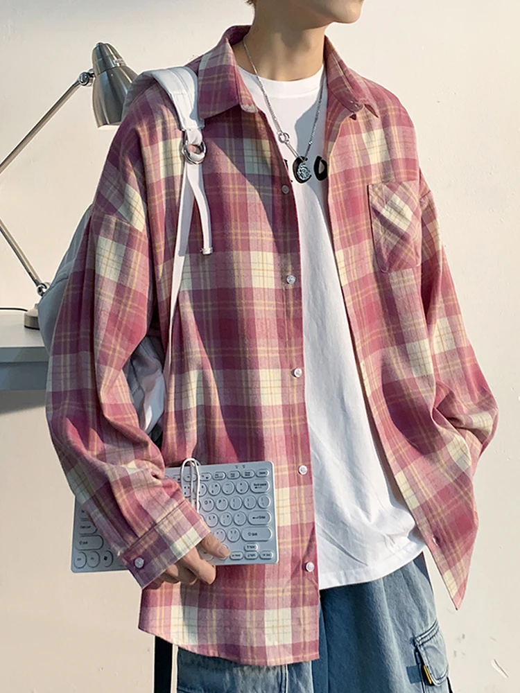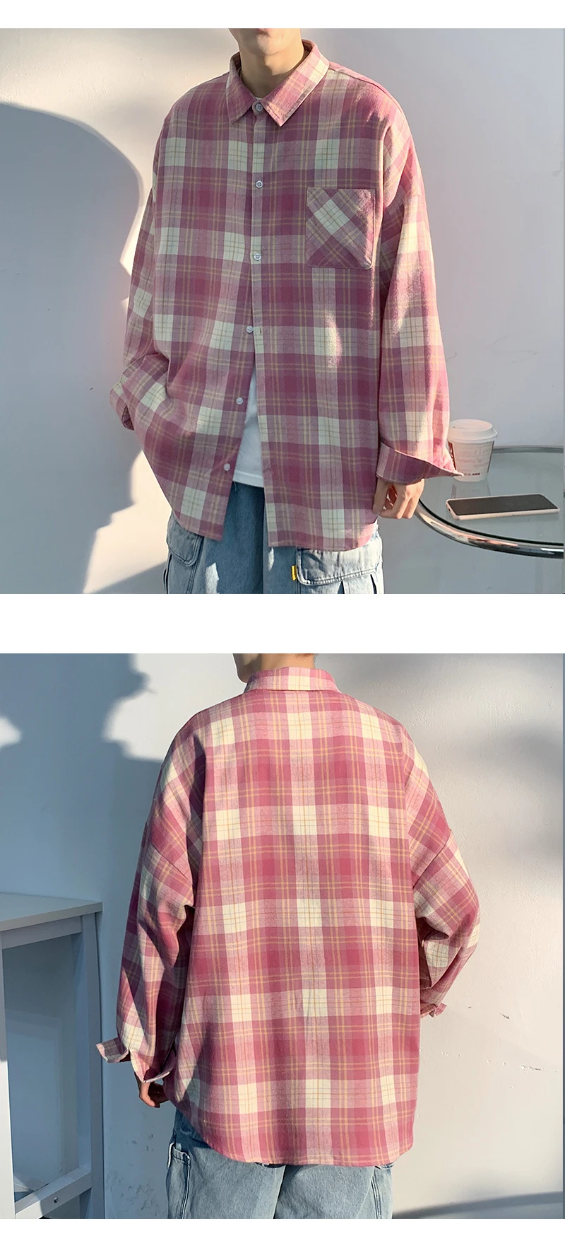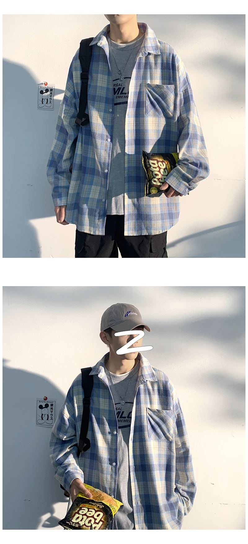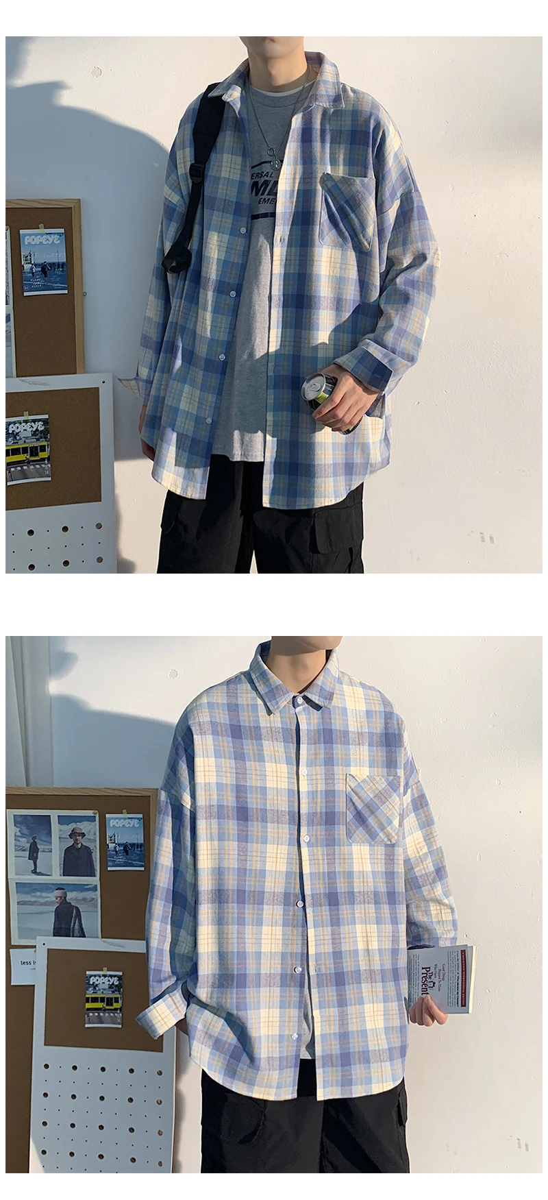 FeatureYouthful Vitality Plaid Shirts Men Streetwear
