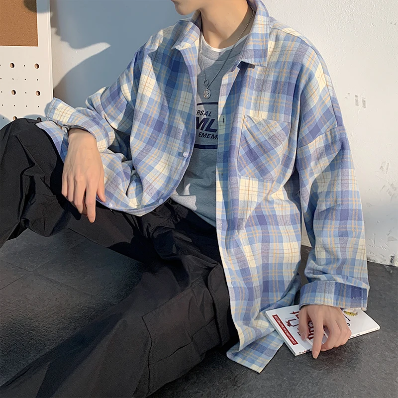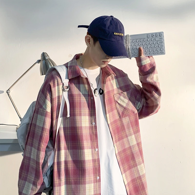Корейская клетчатая рубашка в стиле хип-хоп, мужская повседневная фланелевая универсальная рубашка с длинным рукавом для пар, уличная одежда, 2021