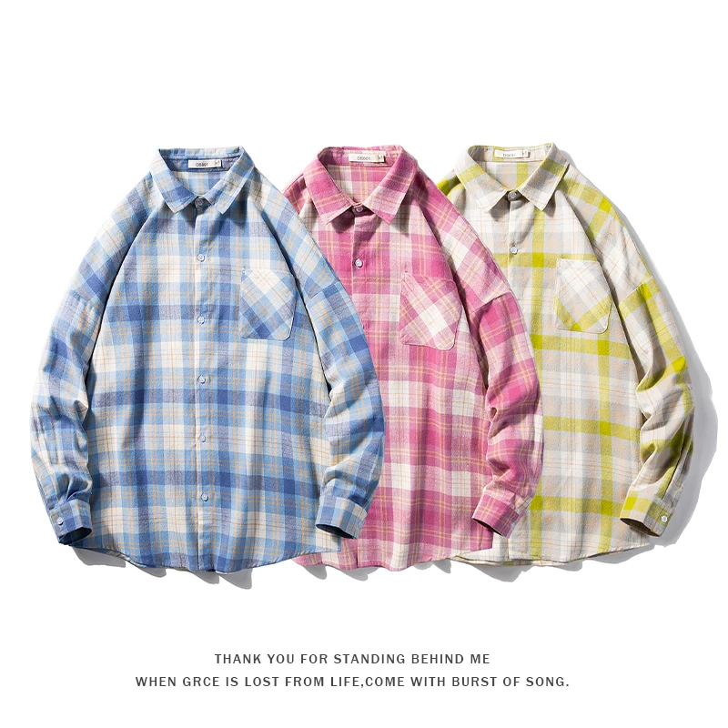 fahionLoose All-match Long Sleeve Flannel Plaid Shirt
