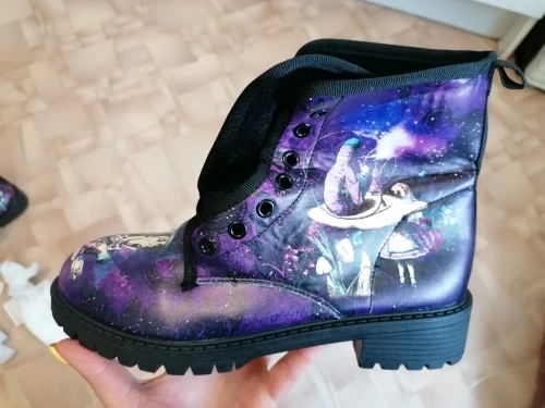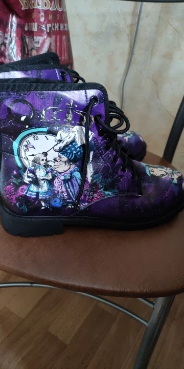 Ботинки реально крутые, я даже не ожидала! В точности, как на картинке, удобные, яркие. Но надо брать на размер больше, мне на обычный 39-40 размер, подошёл 41, и он прямо тютелька в тютельку сел, так что если любите посвободнее, то и на все два размера больше можете брать.