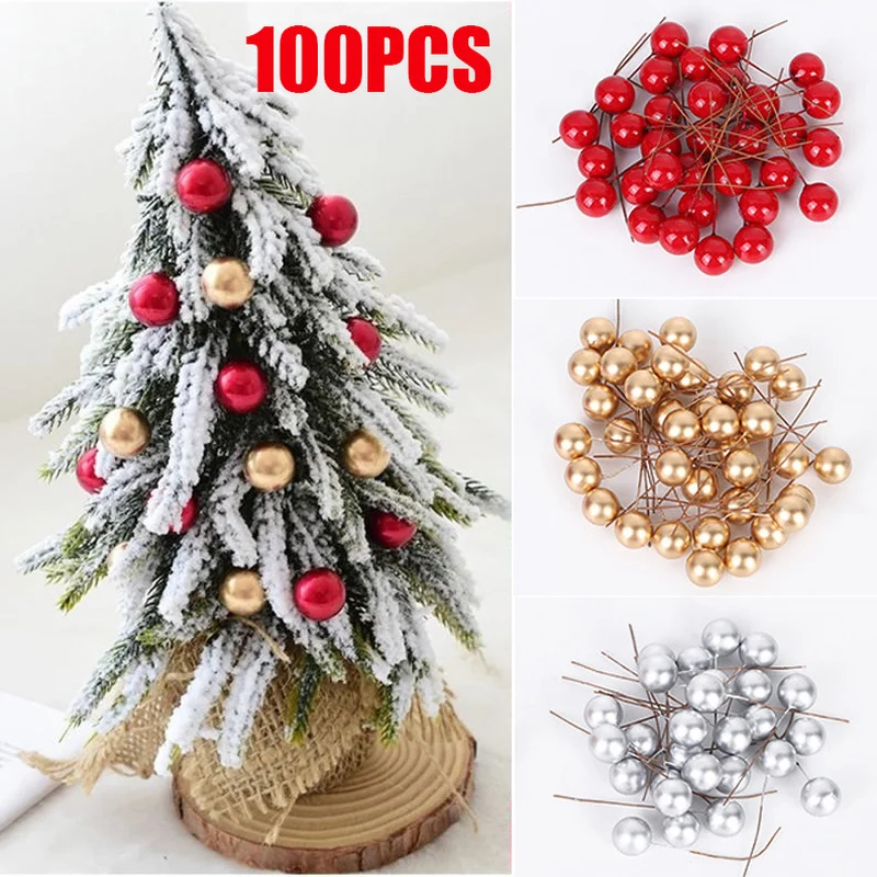 100 шт., искусственные ягоды, золотые, серебряные, красные тычинки вишни, миниатюрные искусственные цветы, жемчужные бусины для поделок, украшения для рождественской вечеринки