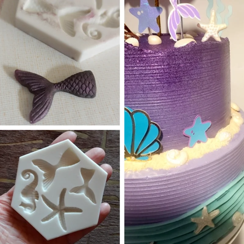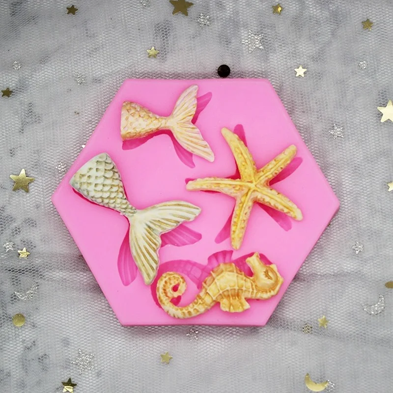 Кухонная силиконовая мини-форма в виде хвоста русалки, морской звезды, искусственная форма для украшения торта, глиняная форма ручной работы, кондитерский инструмент
