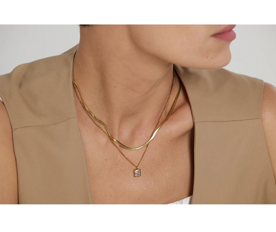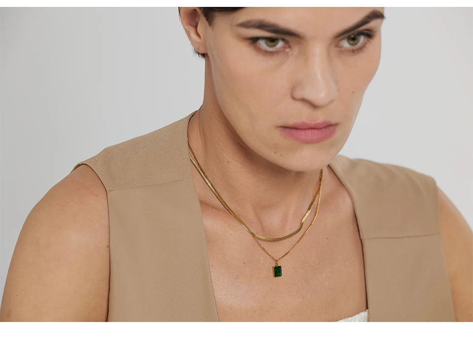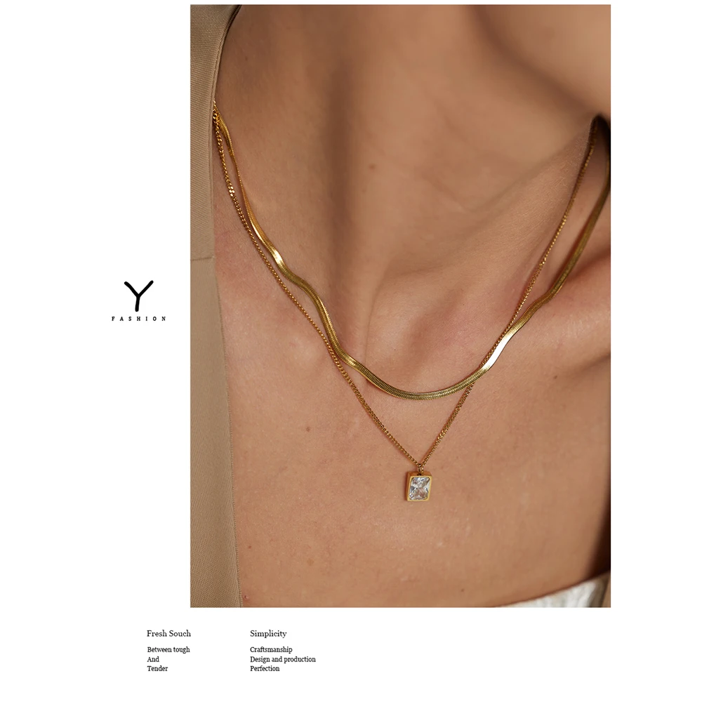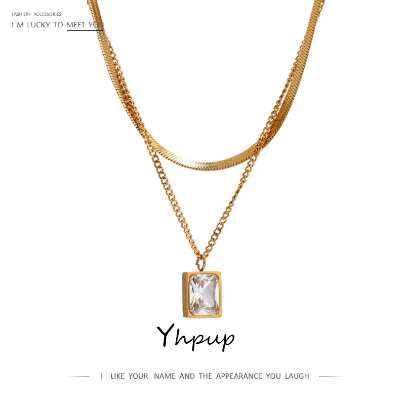 Новинка, ожерелье Yhpup из нержавеющей стали с кубическим цирконием, очаровательное металлическое многослойное ожерелье-цепочка со змеиным плетением, ювелирные изделия