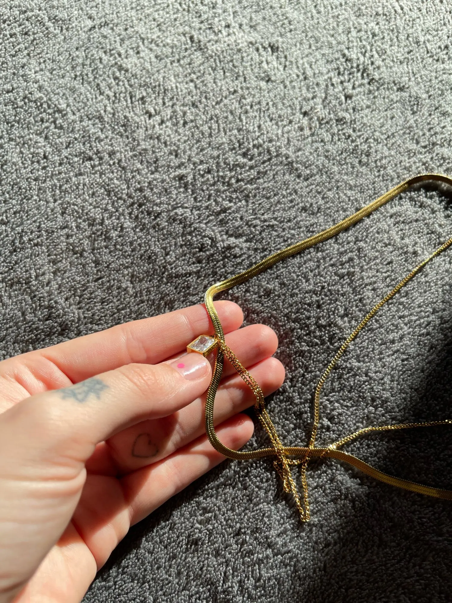 толстая цепочка всетаки некрасиво ложиться, даже на фото видно, что волнами ложиться и путается с тонкой цепочкой ещё. сегодня толстую цепочку оторвала, только тонкую носить буду
