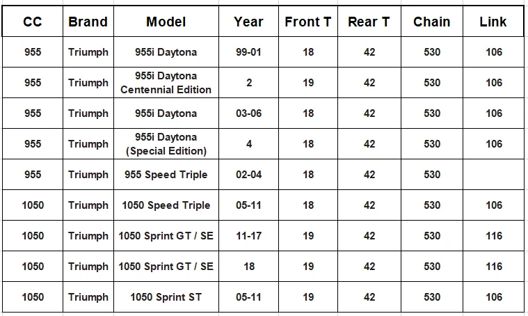 Комплект передних и задних звездочек для мотоцикла с 530 комплектами для Triumph 955i Daytona 99-06 955 1050 Speed Triple 02-11 Sprint 05-18