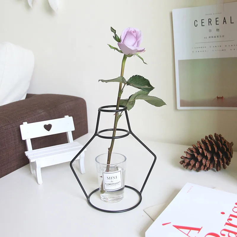 Железная линия, цветы, вазы в скандинавском ретро-стиле, украшение для дома, металлический держатель для растений, настольное украшение, простой железная линия, ваза