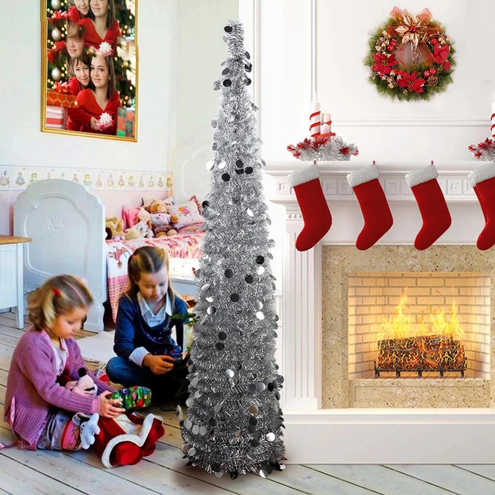 120150 см украшение для рождественской елки с блестками, рождественская елка, Складная искусственная мишура, выдвижная Рождественская елка, новогодний декор