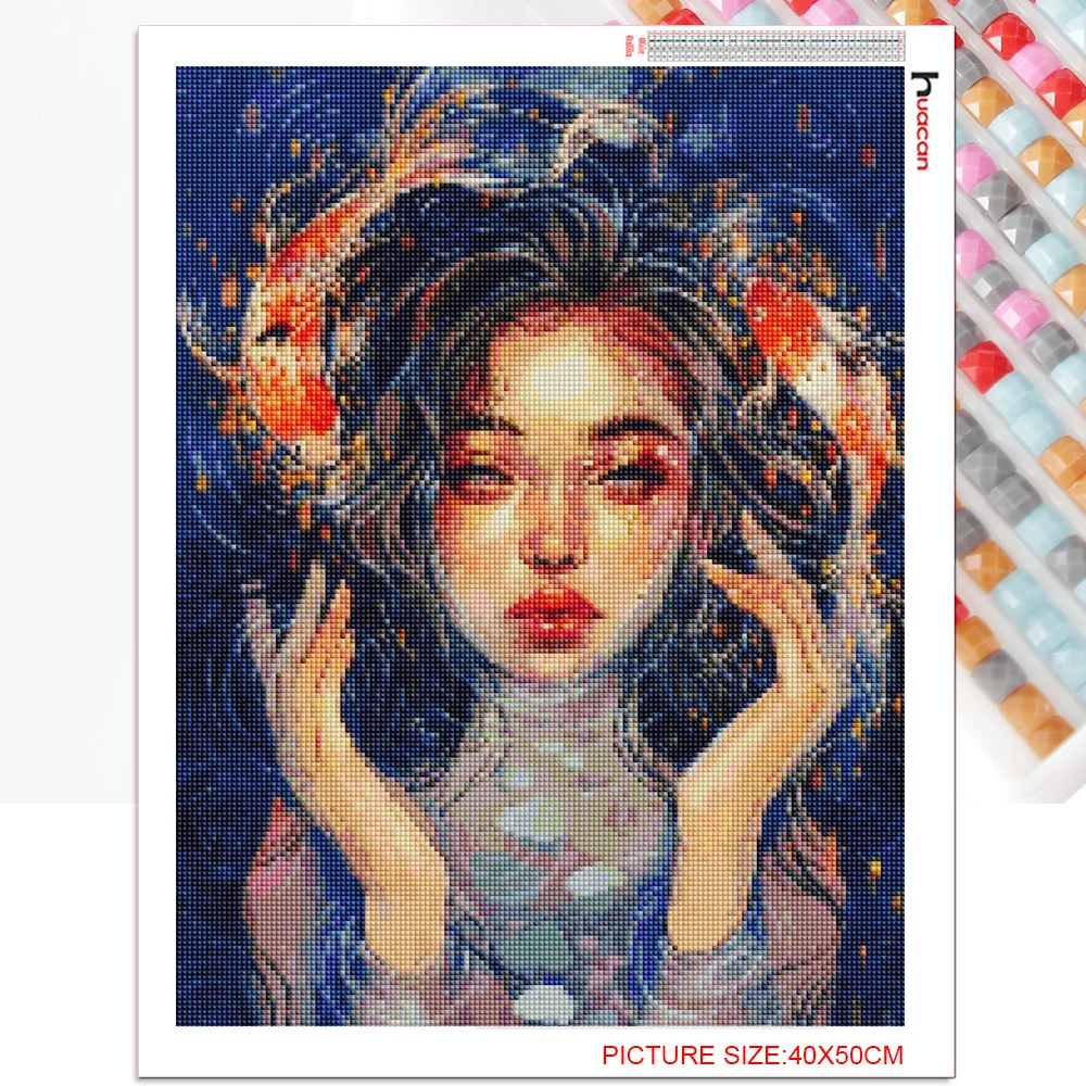 Huacan полностью Алмазная мозаика девушка рыба Алмазная вышивка Картина Портрет картина стразы ремесла украшение для дома