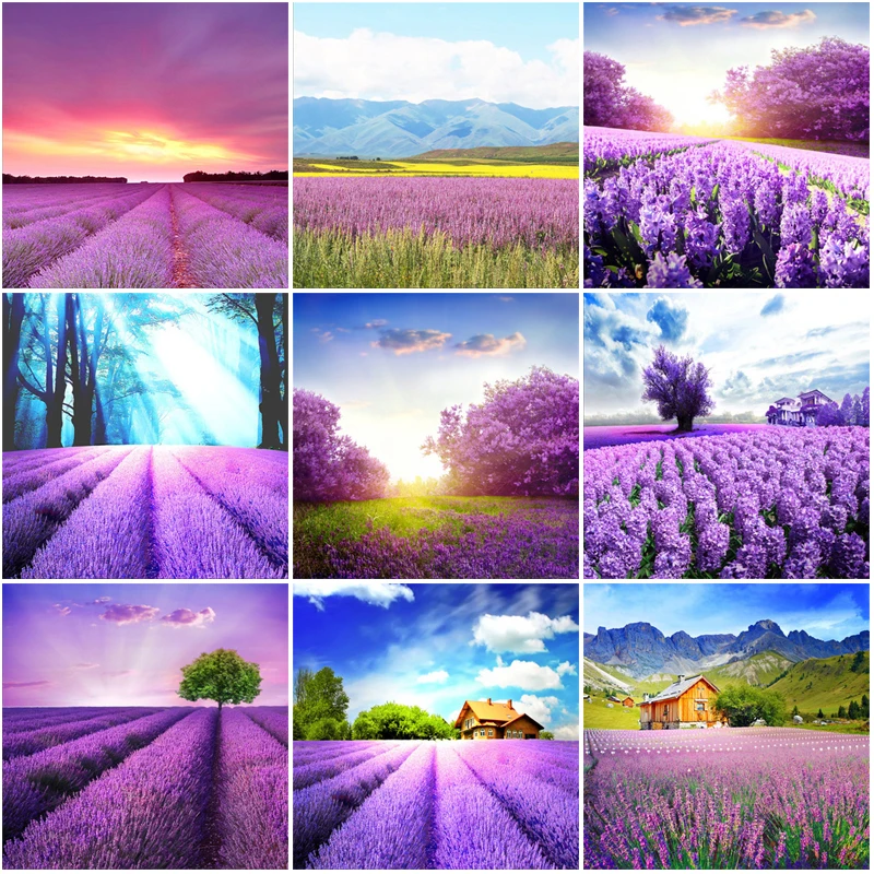 Алмазная 5D живопись сделай сам, вышивка с лавандовым полем, полная выкладка, мозаика из страз, домашний декор, вышивка крестиком