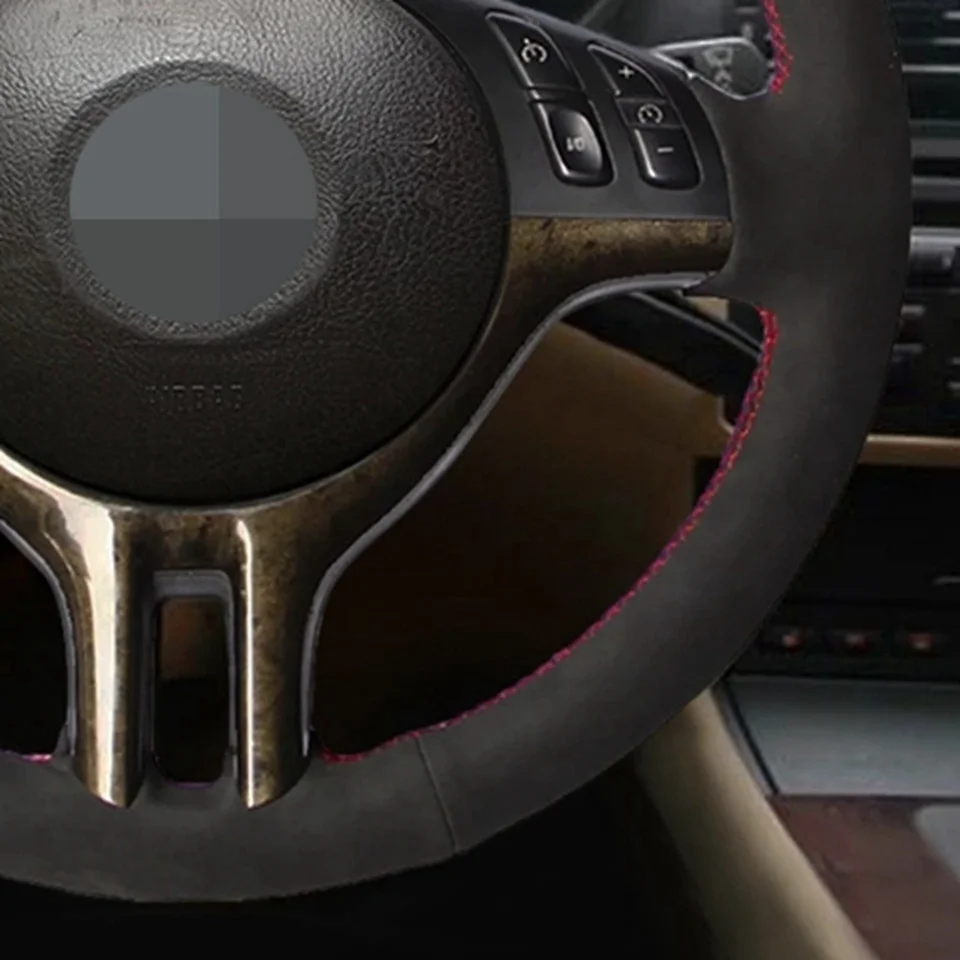 Сделай Сам Нескользящая черная замша мягкая чехол рулевого колеса а...
