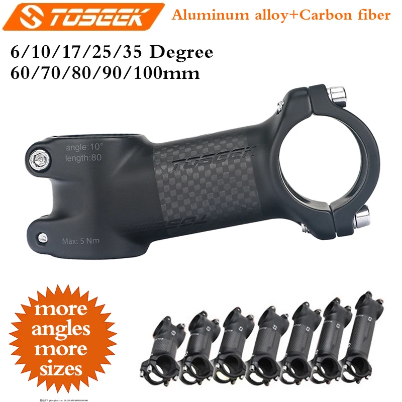 Велосипедный стержень Toseek 610172535 градусов, углеродный стержень для велосипеда 60708090100 мм, алюминиевый сплав