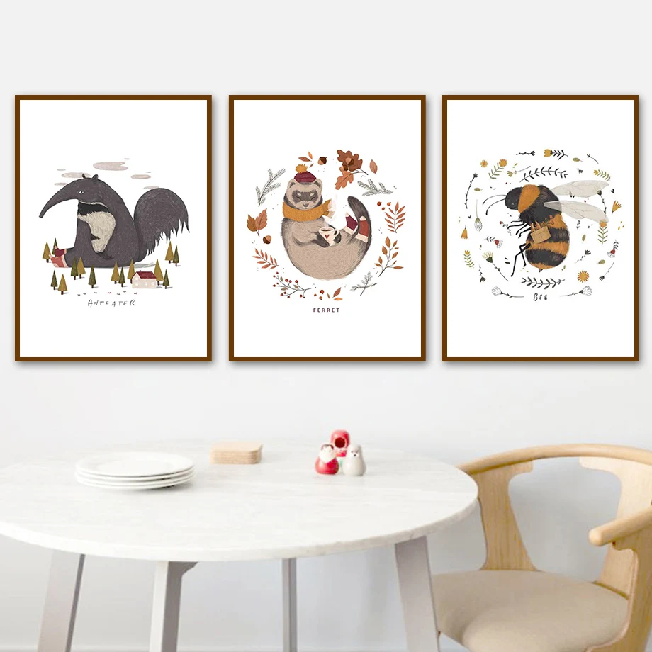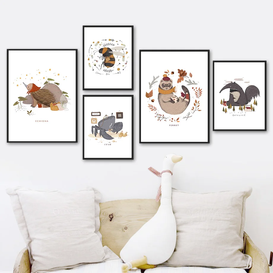Картина на холсте с изображением пчелы краба хорька козы животных в скандинавском стиле настенные картины с принтом для детской комнаты спальни домашний декор