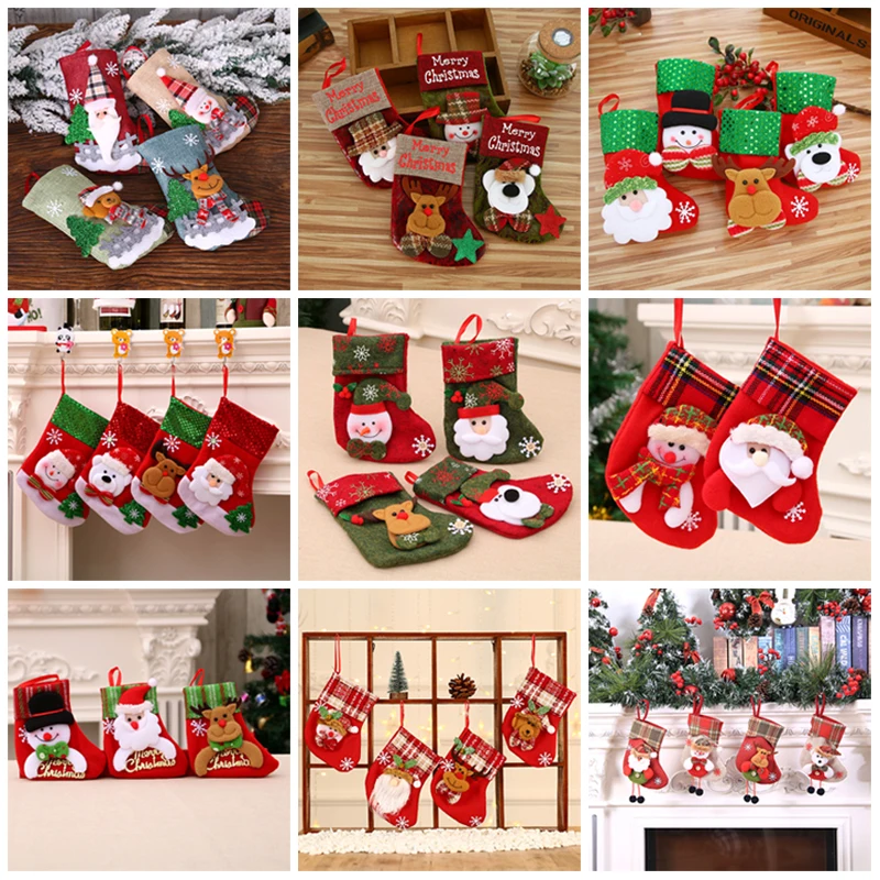 Чулки, Санта Клаус, лось, тканевые подарочные носки, Рождественская...