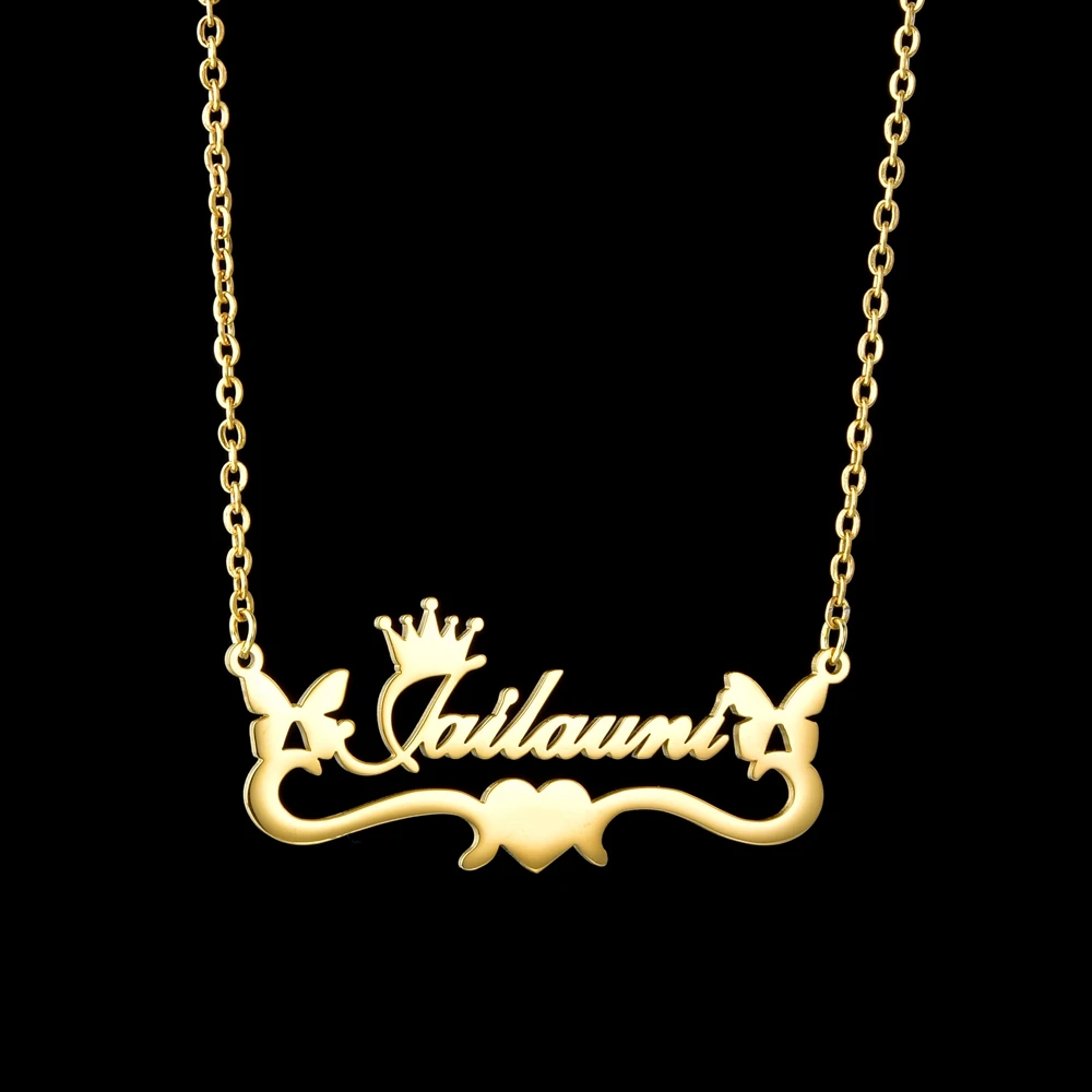 Название: женское ожерелье с персональным именем Acheerup, Золотое колье из нержавеющей стали с буквенным принтом в виде бабочки и сердца, ювелирные изделия, подарки