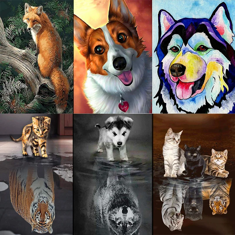 5D алмазная живопись сделай сам, картина с животными, лиса, кошка, собака, мозаика, полная круглая Алмазная вышивка, вышивка крестиком, домашний декор, искусство, подарок