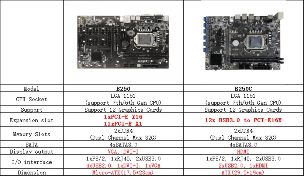 Материнская плата для майнинга B250, BTC, Lga 1151 DDR4 SATA USB 3,0 PCIe X1 PCI-E X16 12, графическая карта, Поддержка графического процессора VGA, для майнинга биткоинов