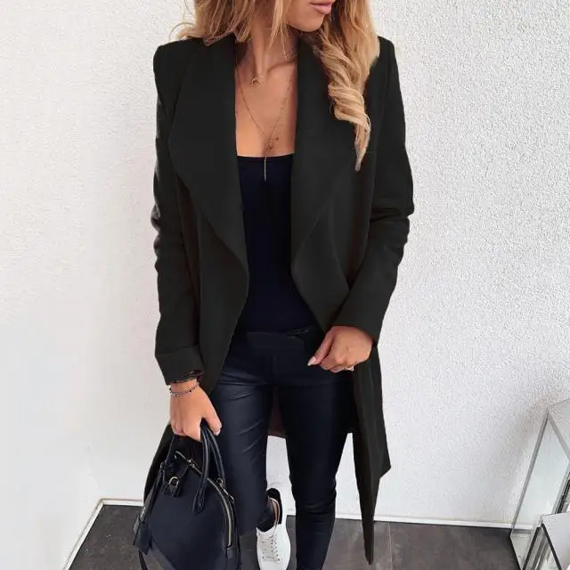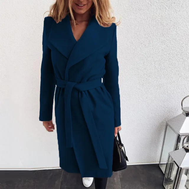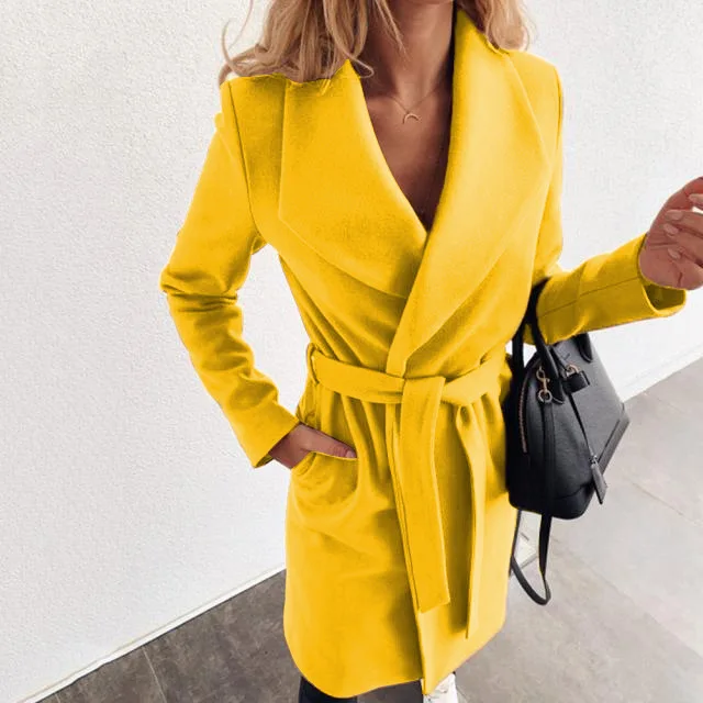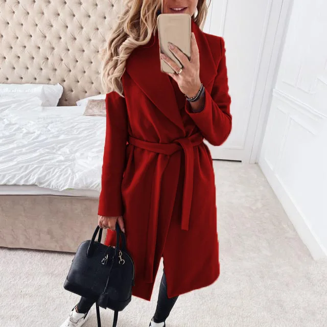 Куртка женская осенне-зимняя шерстяная с поясом и длинным рукавом